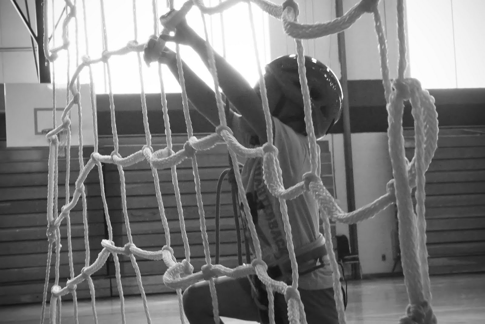 Before tackling the rock wall, they began by learning how to climb to ropes....